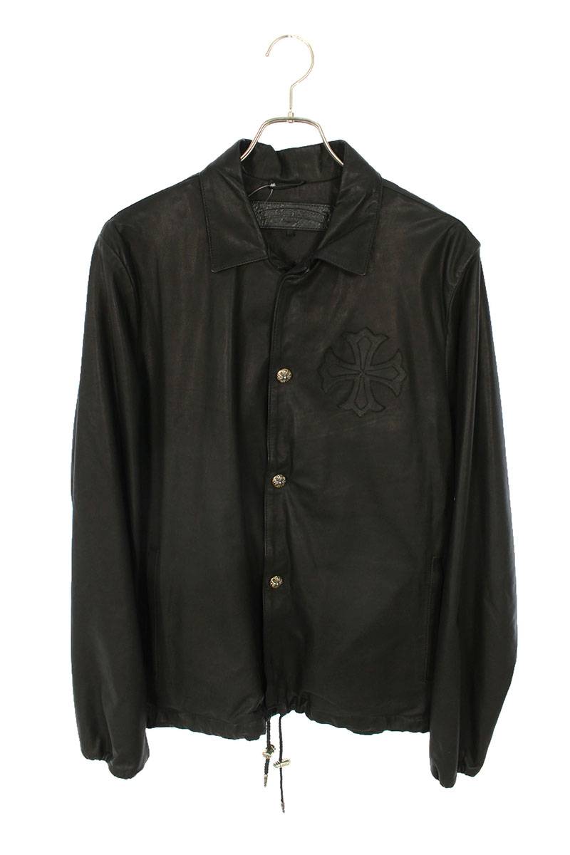 クロムハーツ/Chrome Hearts サイズ:M(JVP) 【RIGGINS LTHR】バック英字レザーパッチコーチレザージャケット(ブラック×シルバー)【SS07】【メンズ】【412012】【中古】bb63#rinkan*B