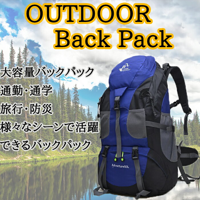 リュック バックパック ザック リュックサック トレッキング 大容量 メンズ レディース 軽量 登山 防災 50L 黒 レインカバー付き 送料無料