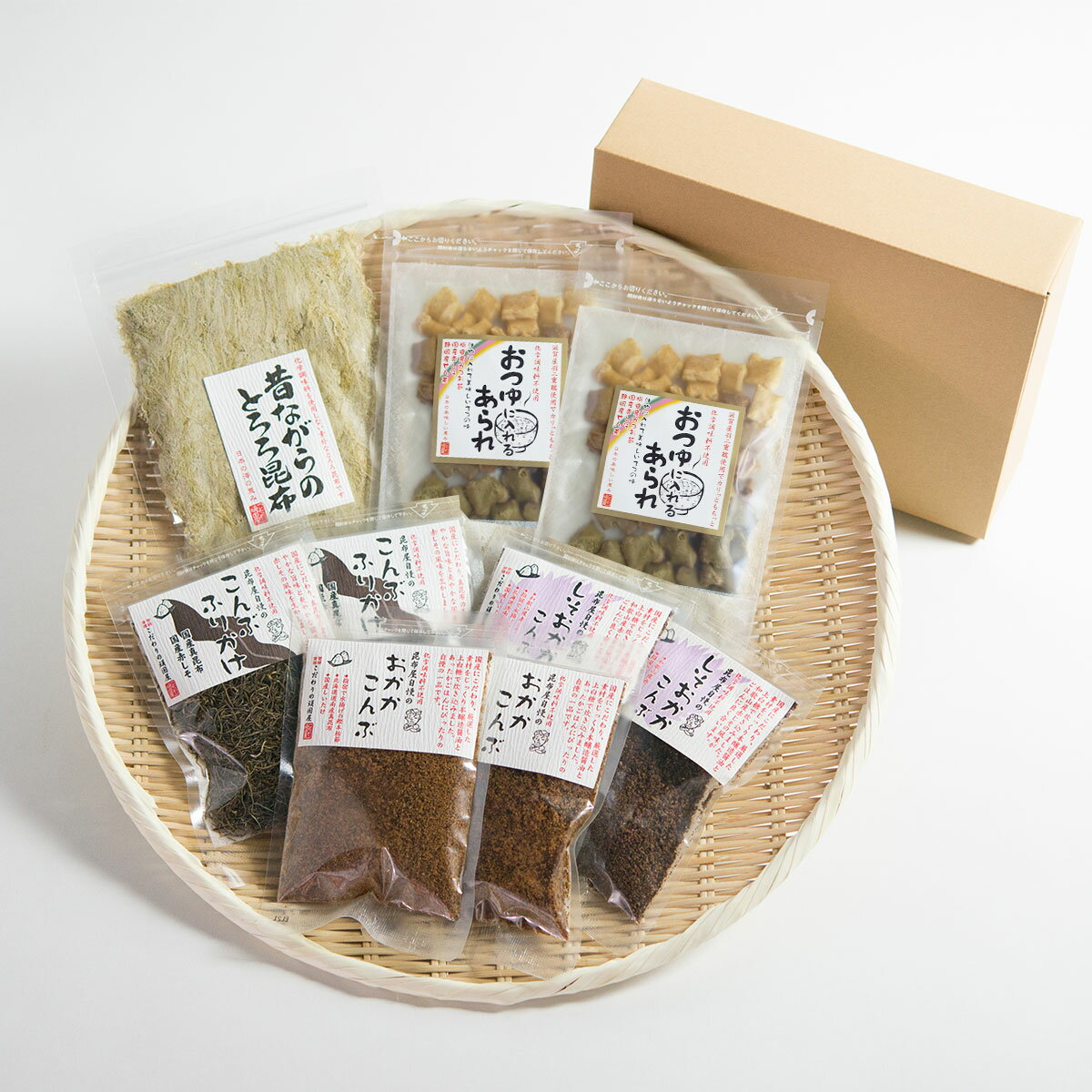 【事業者名・販売者名】こだわりの頑固屋【所在地】滋賀県【名称】乾物【数量・内容】昔ながらのとろろ昆布58g×1、昆布屋自慢のしそおかかこんぶ50g×2、昆布屋自慢のおかかこんぶ50g×2、昆布屋自慢のこんぶふりかけ30g×2、おつゆに入れるあられ30g×1 【賞味期間】常温240日【原材料】【昔ながらのとろろ昆布】(北海道、青森産昆布、醸造酢、米酢)【昆布屋自慢のしそおかかこんぶ】鰹節(指宿産本枯節)、赤しそ(国産)、真昆布(道南産)しいたけ(九州産)、本醸造醤油、しそ酢、上白糖、(原材料の一部に大豆、小麦を含む)【昆布屋自慢のおかかこんぶ】鰹節(指宿産枯節)、道南産真昆布、国産しいため、本醸造醤油、上白糖、(原材料の一部に大豆、小麦を含む)【昆布屋自慢のこんぶふりかけ】北海道・青森産昆布、赤しそ(愛知産)、醸造酢、米酢、しそ酢【おつゆに入れるあられ】羽二重餅(滋賀産)、煎茶(静岡産)、鰹節(鹿児島産)南高梅(和歌山産)【仕様】掲載商品には、アレルギーの原因といわれる原材料を含んでいる場合がございます。